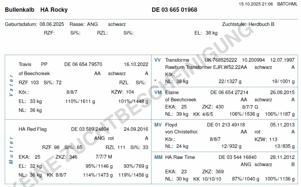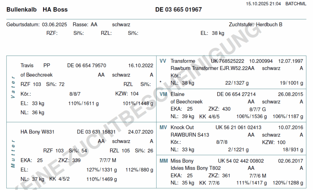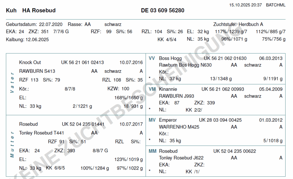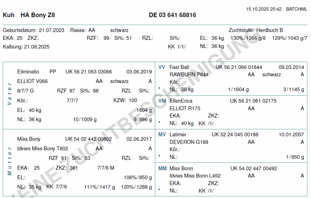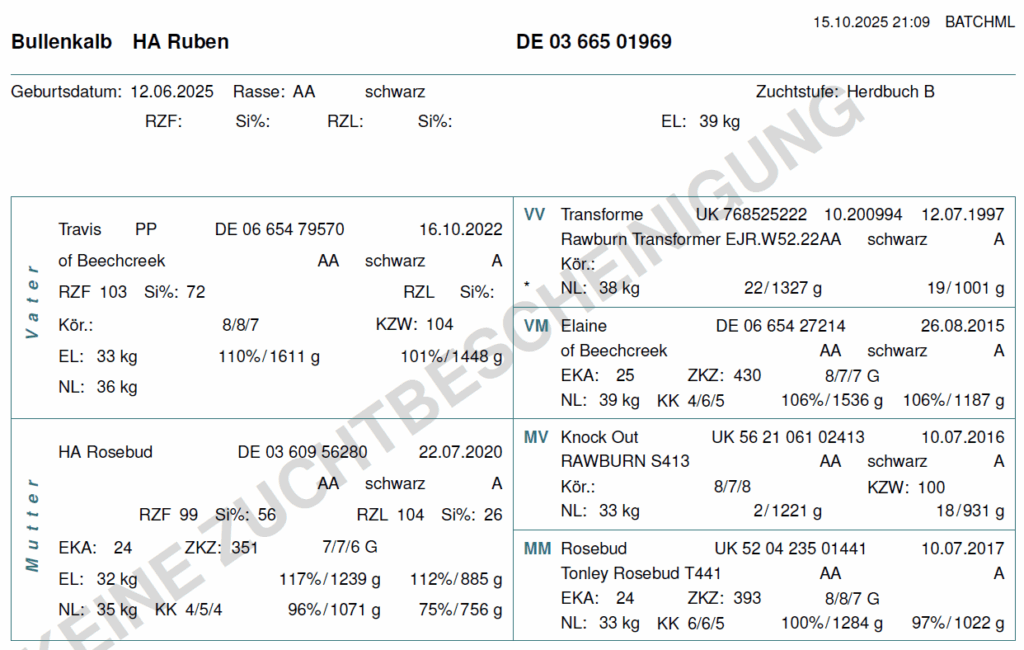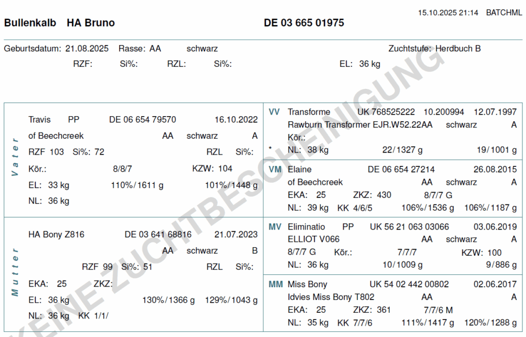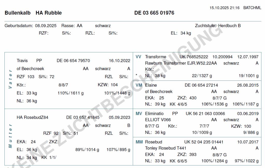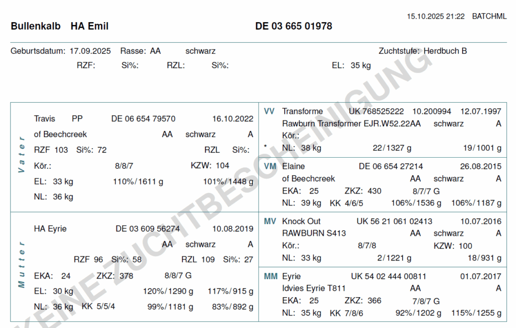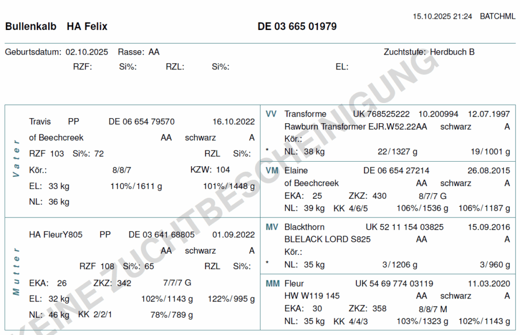 Wir können die folgenden Färsen und Bullenkälber anbieten. Aufgrund der hohen Nachfrage lohnt es sich frühzeitig ein Tier zu reservieren. Bei Interesse schicken wir gern aktuelle Bilder und Videos der Verkaufstiere, sowie deren Eltern zu!